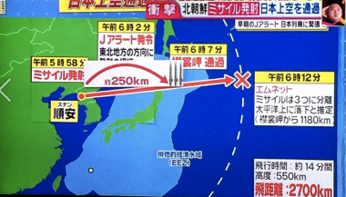 なので今朝の上空をミサイルが通過しただけでは