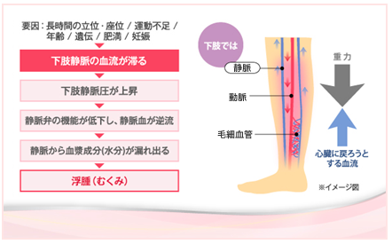 - 下肢(かし)いわゆる脚部の血流が滞る